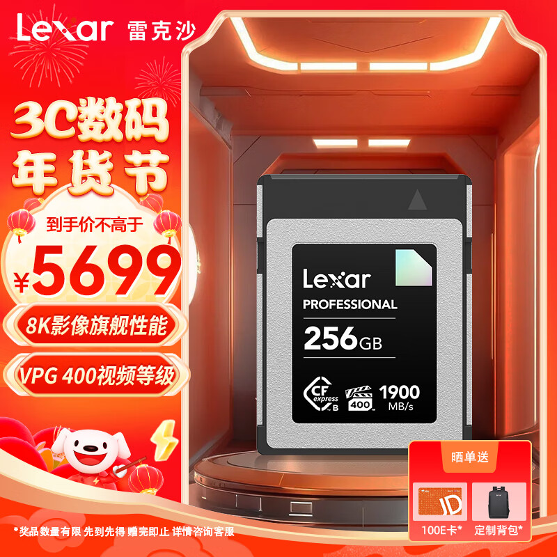雷克沙(Lexar)256GB CFexpress Type B存储卡 VPG400 读1900MB/s 富士佳能尼康适配 8K RAW拍摄(DIAMOND)价格:5693.30元!