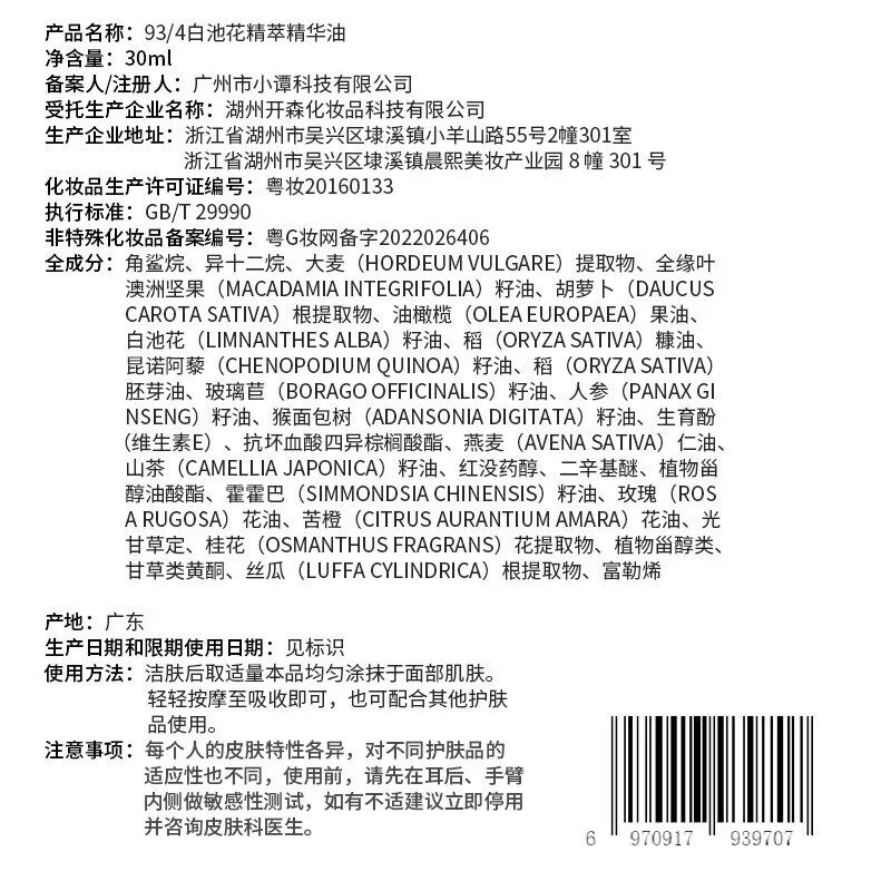 934白池花焕颜精华油滋养淡纹舒缓泛红干皮男女适用新年礼物送人30ml价格:179.00元!