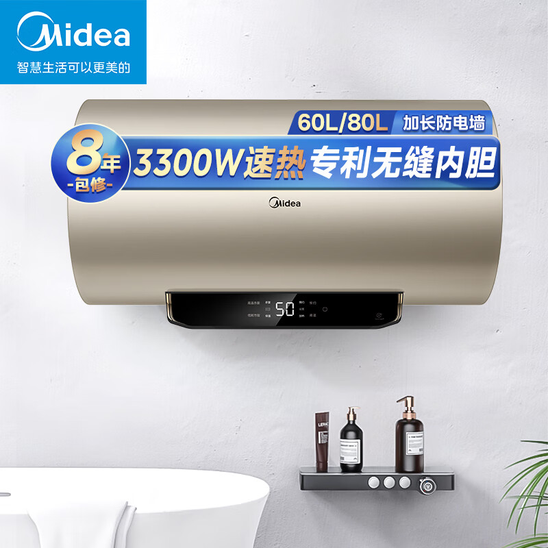 美的(Midea)电热水器80L 大功率3300W速热 加长防电墙 多重防护F8033-ZK2(H)*价格:2199.00元!