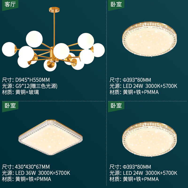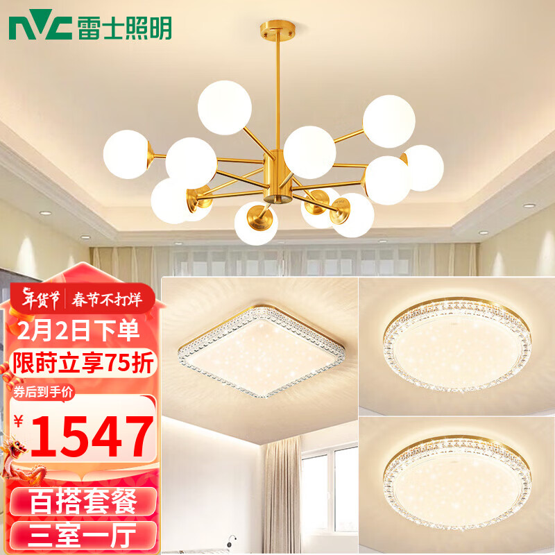 雷士(NVC)吊灯铜魔豆分子灯客厅北欧灯具灯饰创意现代轻奢三室一厅NGD12-2价格:2329.00元!