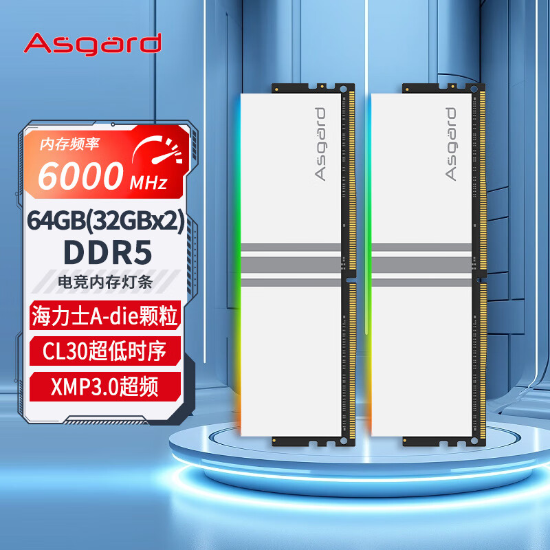 阿斯加特(Asgard)64GB(32Gx2)套 DDR5 6000频 台式机内存条 RGB灯条 女武神·瓦尔基里【CL30】价格:1469.00元!