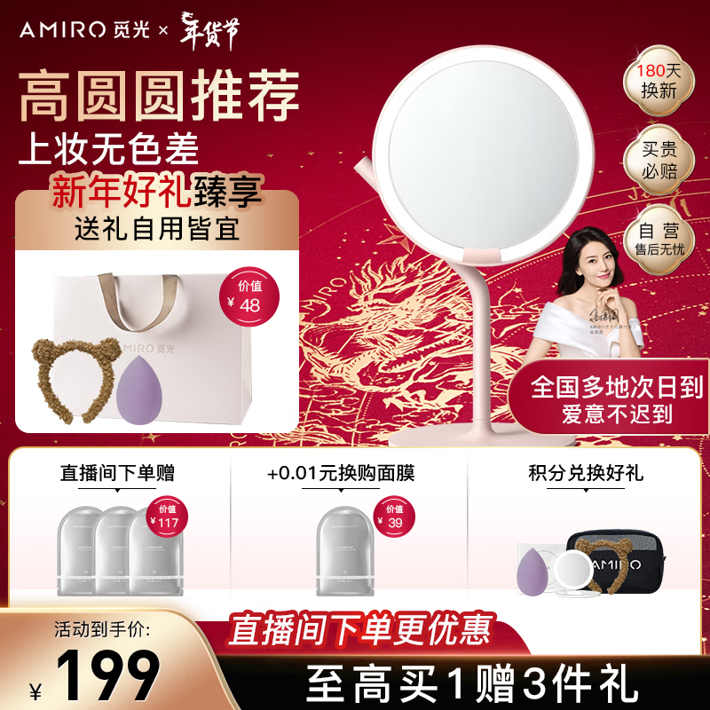 AMIRO觅光 化妆镜带灯led日光梳妆美妆镜子 补光 智能高清台式便捷 新年礼物送女生送老婆 小魔镜 粉价格:229.00元!