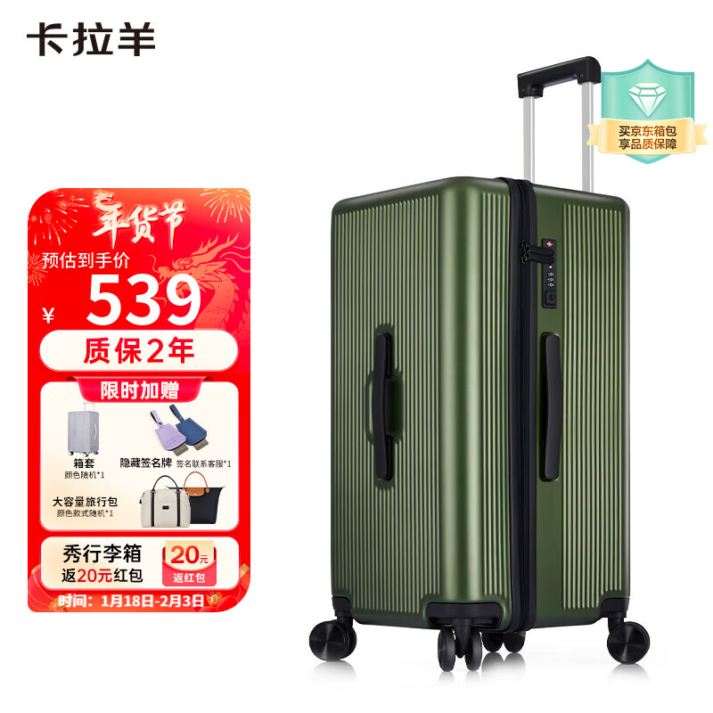 卡拉羊魔方体行李箱24英寸大容量旅行箱男女巨能装拉杆箱CX8110沙漠绿价格:639.00元!