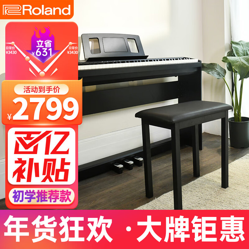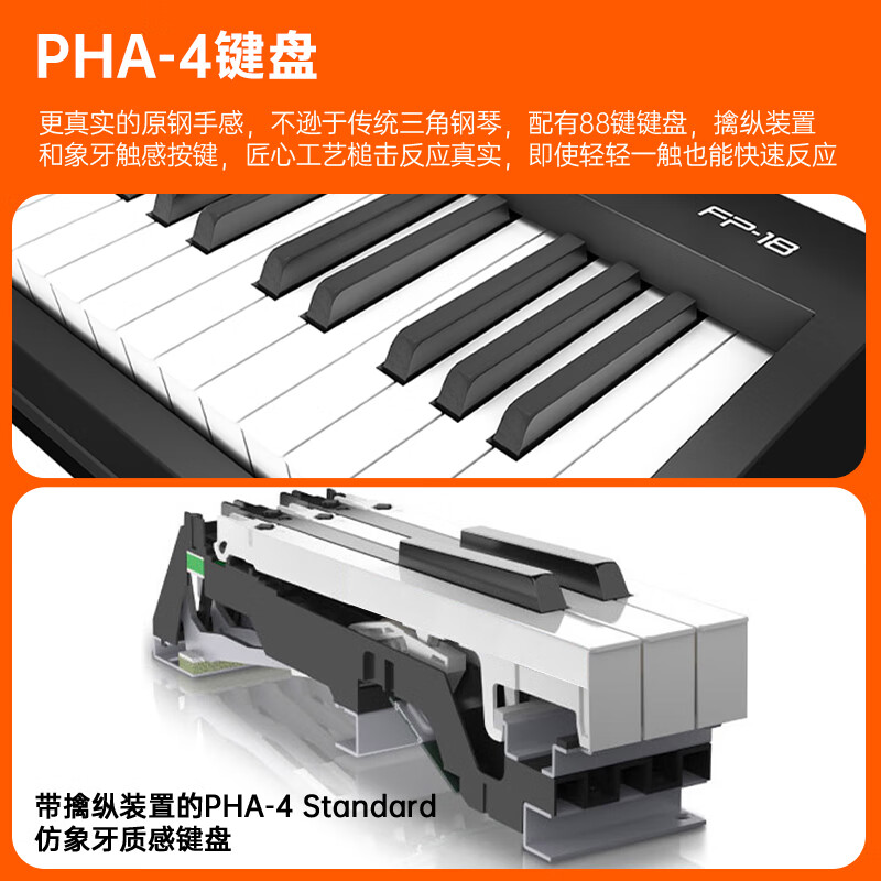 罗兰(Roland)考级智能初学88键重锤电钢琴FP18主机+三踏板木架+原装琴凳+礼包价格:3430.00元!