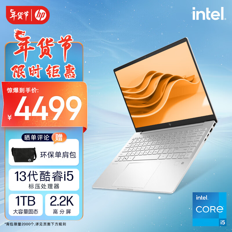 惠普HP 星Book Pro 14英寸轻薄笔记本电脑(13代酷睿i5-13500H标压 16G 1TB 2.2K高色域屏 指纹背光)银价格:4499.00元!