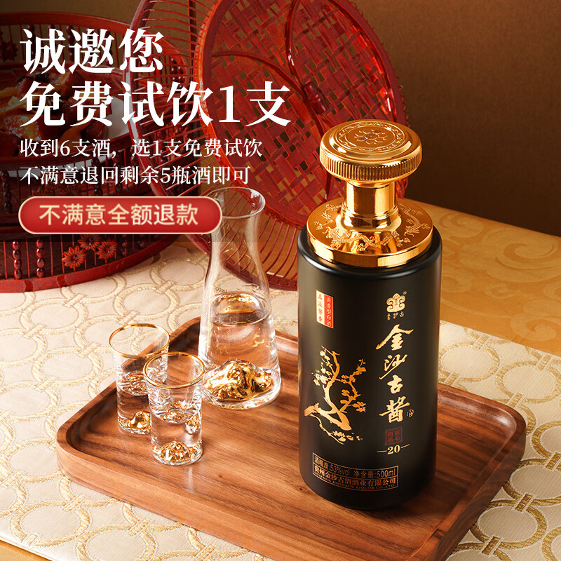 金沙古匠心20 酱香型优级白酒 53度500ml*6瓶纯粮酒整箱装 贵州老字号价格:399.00元!