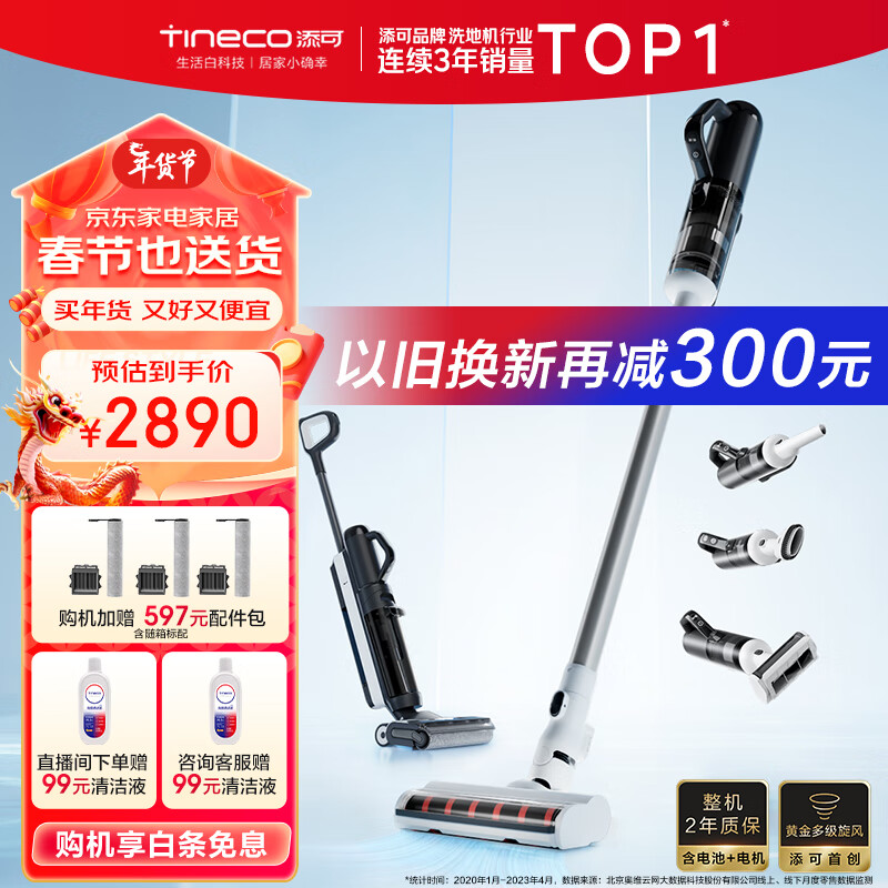 添可(TINECO)无线智能洗地机芙万Chorus Air 家用扫地机吸拖一体除菌吸尘拖地立体自清洁吸尘器价格:3090.00元!