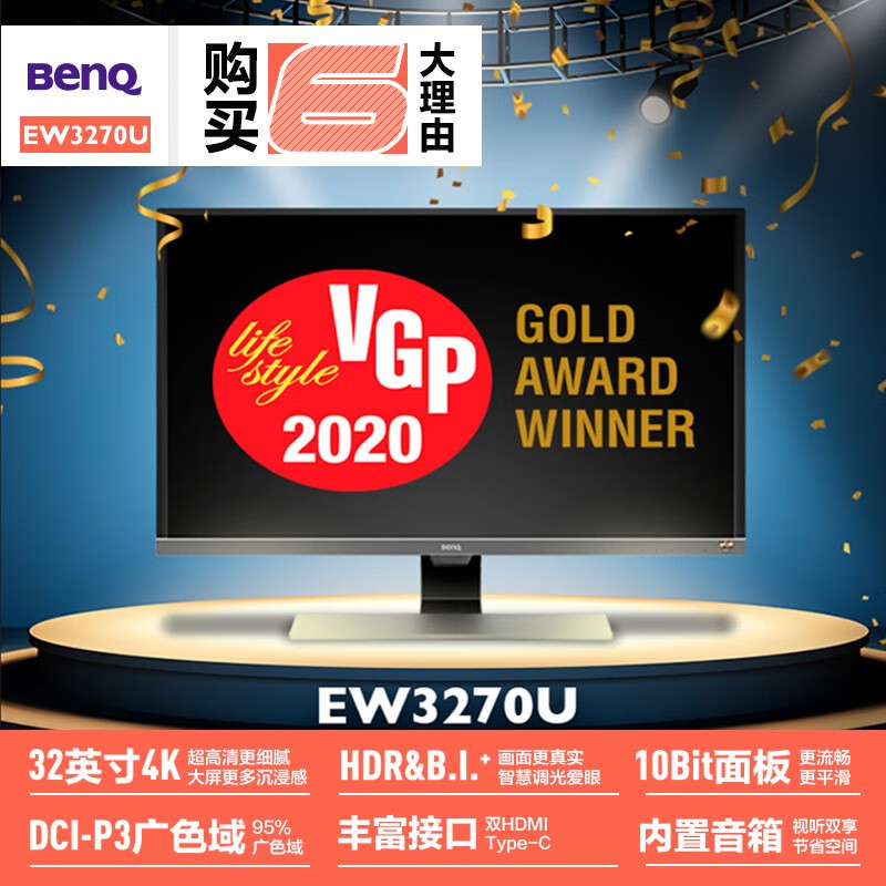 明基(BenQ)EW3270U 31.5英寸 4K HDR 广色域 10bit防撕裂内置音箱 智慧爱眼Type-C PS5/电脑/游戏显示器价格:2899.00元!