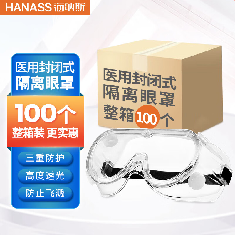 HANASS 医用隔离眼罩护目镜(全封闭型眼镜)整箱集采100件/箱价格:2400.00元!