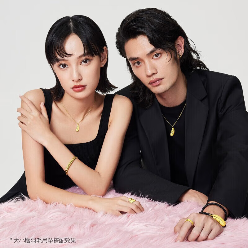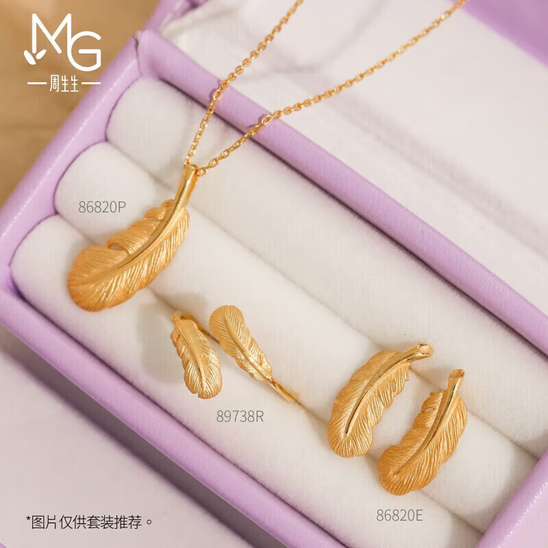 周生生新年礼物黄金吊坠 爱情密语足金羽毛挂坠女 不含素链86820P计价4.8克价格:3209.00元!