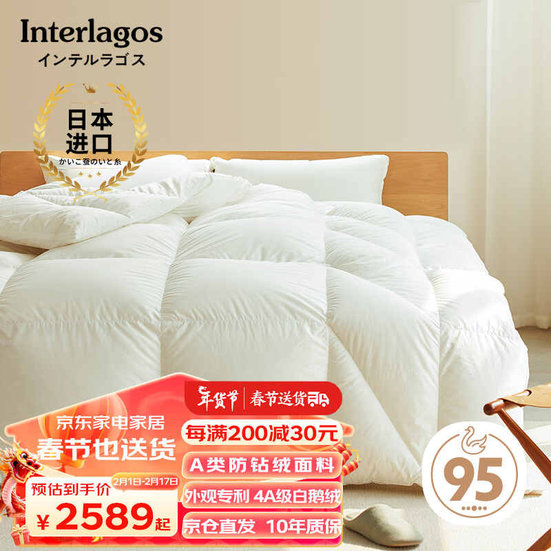 Interlagos人体工学95%白鹅绒羽绒被日本进口冬被 1400g 偏厚款220*240cm价格:3759.00元!