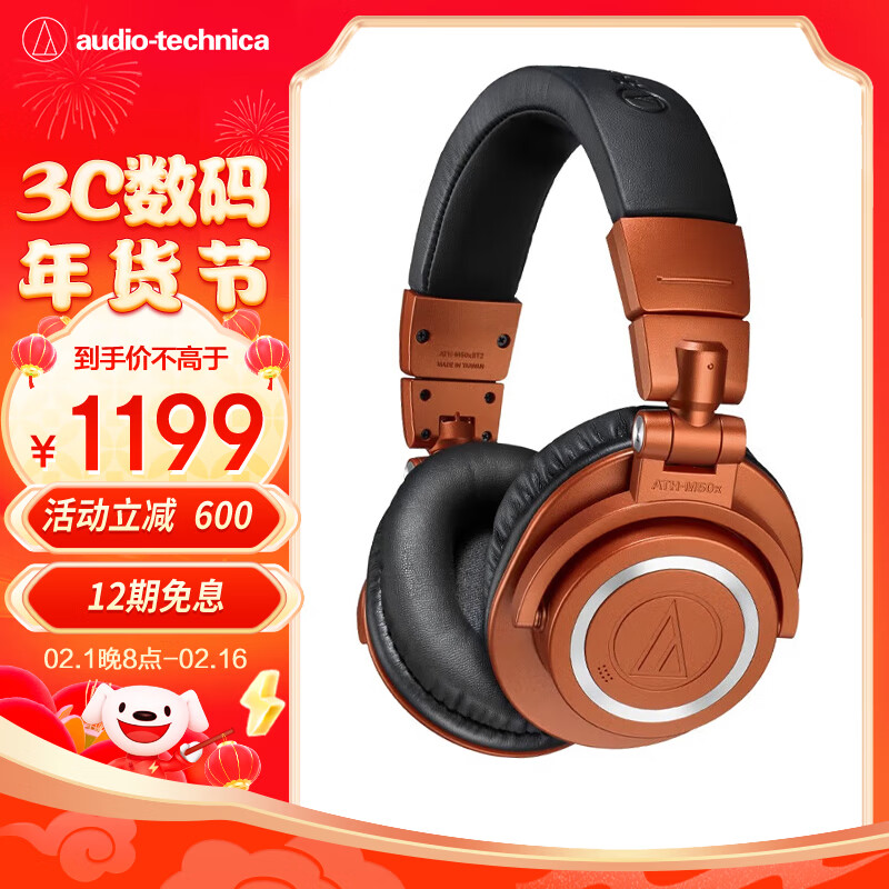 铁三角(Audio-technica)ATH-M50xBT2 MO 专业头戴监听蓝牙耳机 无线便携折叠 特别版夜盏橙价格:1799.00元!