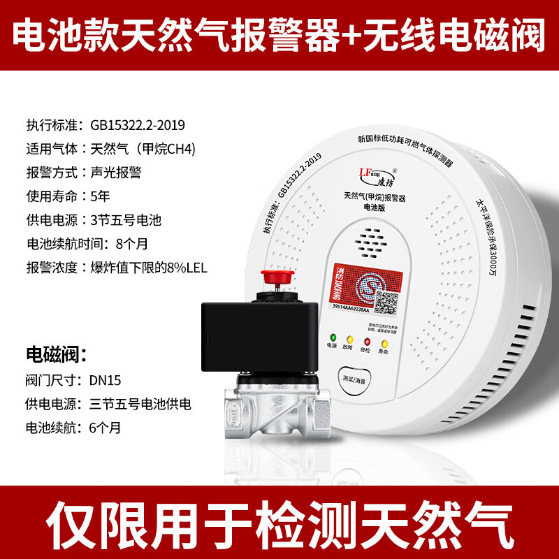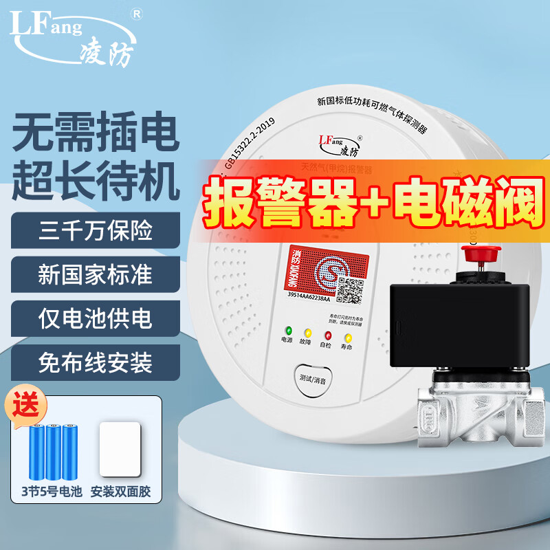 凌防(LFang)JT-QF-D730 电池款燃气报警器天然气报警器智能家用厨房可燃气体探测泄漏消防报警器搭配切断阀价格:244.00元!