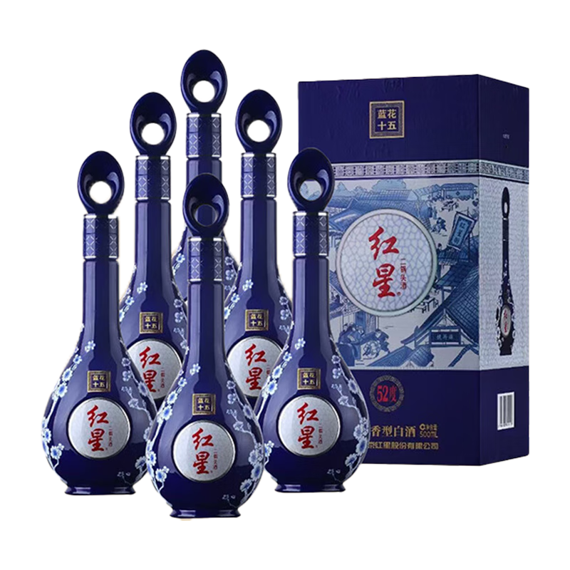 红星北京二锅头蓝花十五清香型礼盒白酒52度 500ml*6瓶整箱价格:1554.00元!