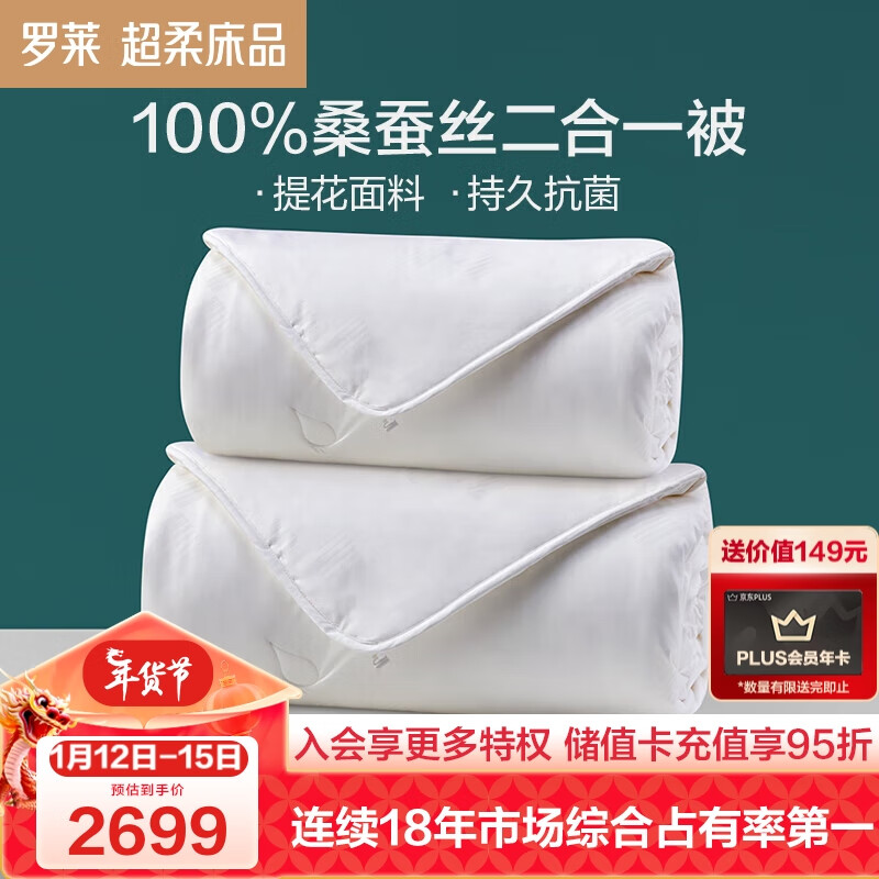 罗莱家纺 云梦熙 100%桑蚕丝被 子母被子 12.2斤220*250cm 白色价格:3699.00元!