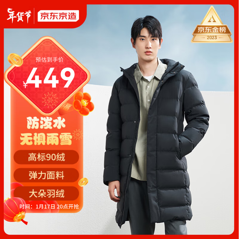 京东京造【聚热羽绒plus+】男士羽绒服外套冬季防钻绒中长款黑色L价格:549.00元!