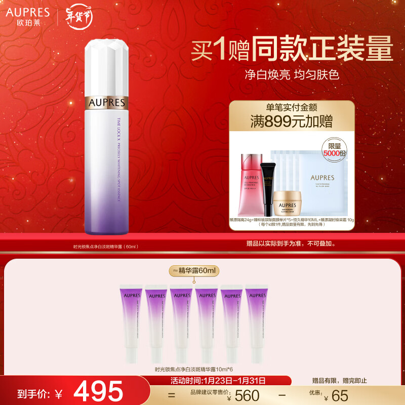 欧珀莱(AUPRES) 时光锁焦点净白淡斑精华露60ml(面部精华补水保湿)价格:555.00元!