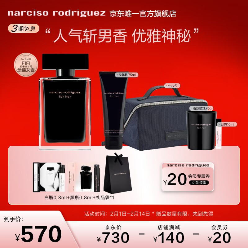 纳西索·罗德里格斯(Narciso Rodriguez)for her女士淡香水50ml宋妍霏推荐黑瓶送女友送老婆生日礼物价格:730.00元!