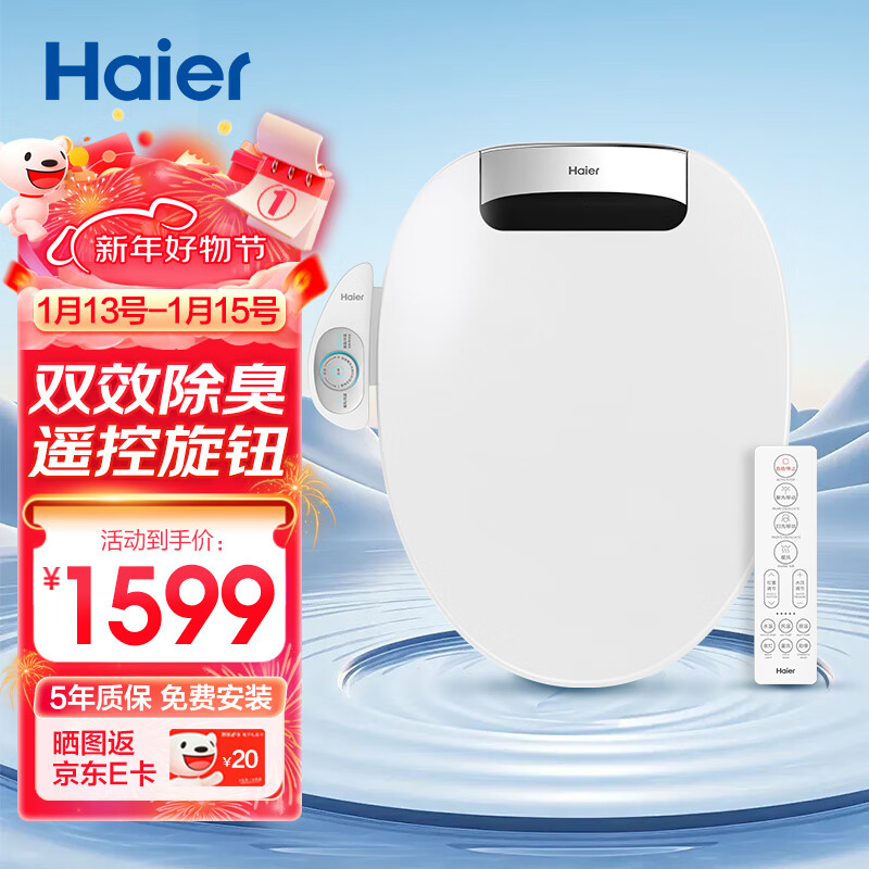 海尔(Haier)智能马桶盖 即热暖风款 遥控旋钮光感夜灯自动除臭 DF-28价格:1999.00元!