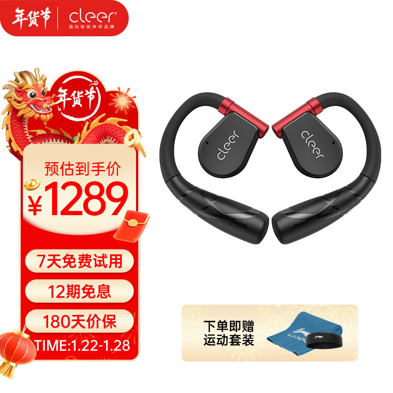 cleer【任贤齐代言】ARCII骨传导升级不入耳开放式智能无线蓝牙耳机 生日 新年礼物 曜石黑【运动版】价格:1289.00元!