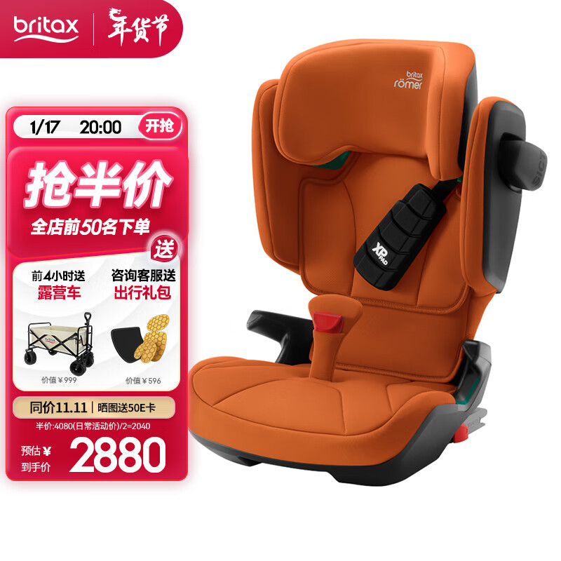 宝得适(BRITAX)儿童座椅德国进口3-12岁isofix接口 凯迪骑士isize 日落金价格:3080.00元!