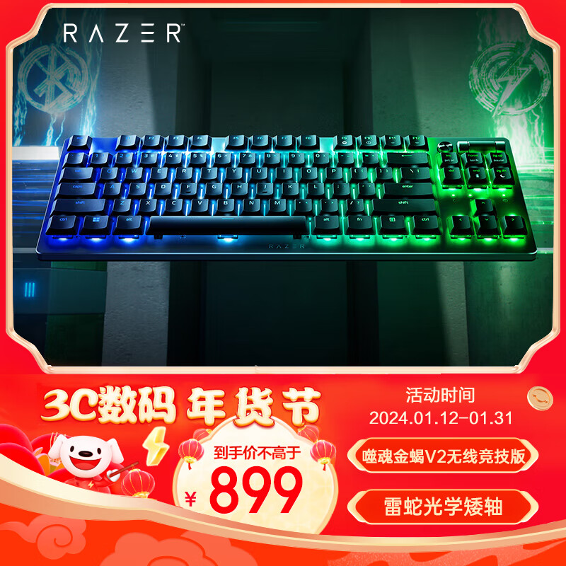 雷蛇 RAZER 噬魂金蝎V2无线竞技版 线性光学矮轴 机械键盘 RGB幻彩灯效 无线蓝牙5.0 徐大虾推荐价格:899.00元!