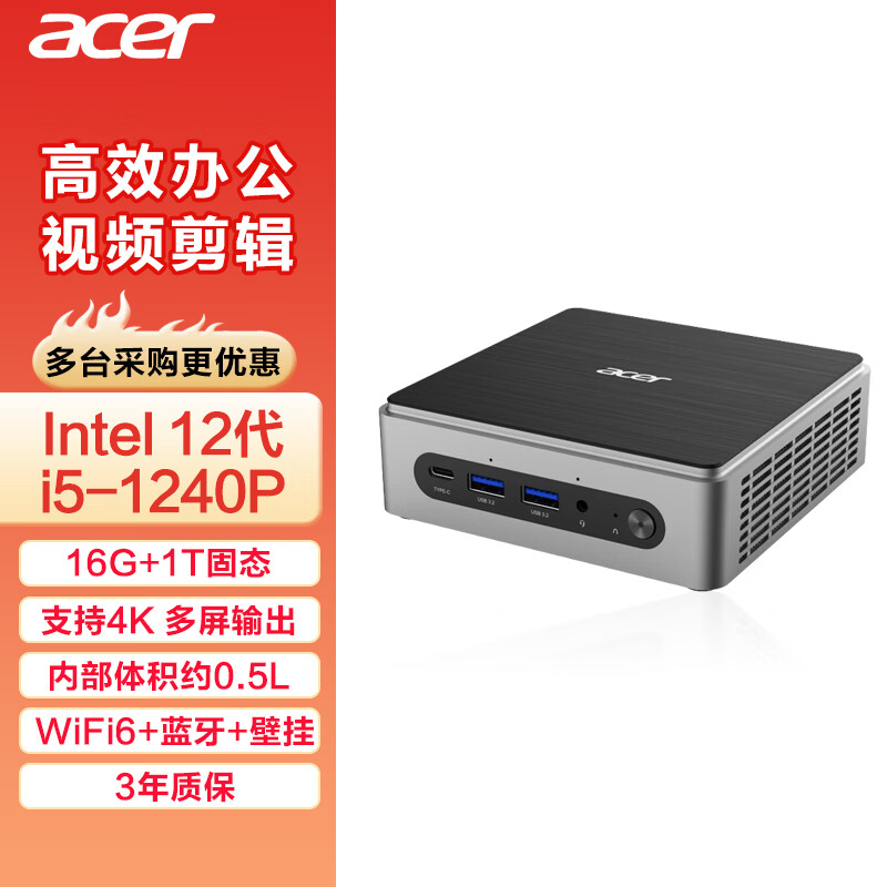 宏碁(acer)蜂鸟台式电脑迷你主机mini口袋高性能商家用学习定制 intel酷睿12代 i5-1240P 16G 1TSSD价格:3099.00元!