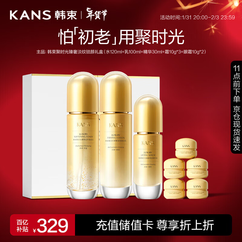 韩束聚时光鎏金塑颜8件套礼盒 淡纹抗皱护肤品套装礼物送女生价格:329.00元!