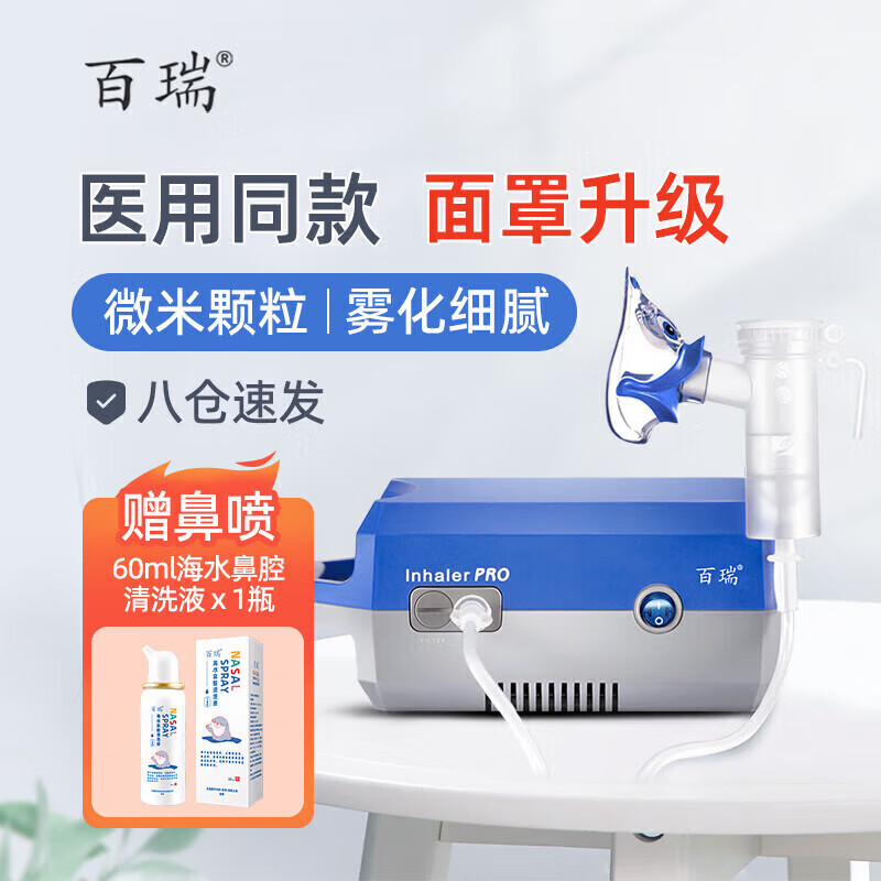百瑞 雾化器儿童雾化机家用成人医用压缩空气便携雾化器lnhaler PRO面罩升级款 医用同款蓝灰色价格:1580.00元!