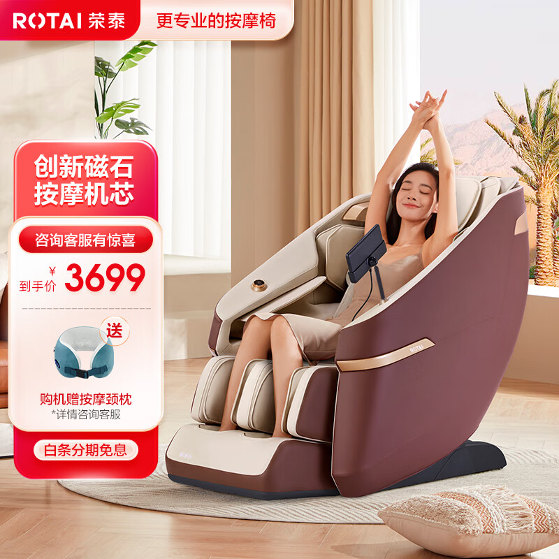 荣泰(RONGTAI)按摩椅家用全身揉捏全自动小型太空舱按摩沙发椅A37 红色价格:4299.00元!