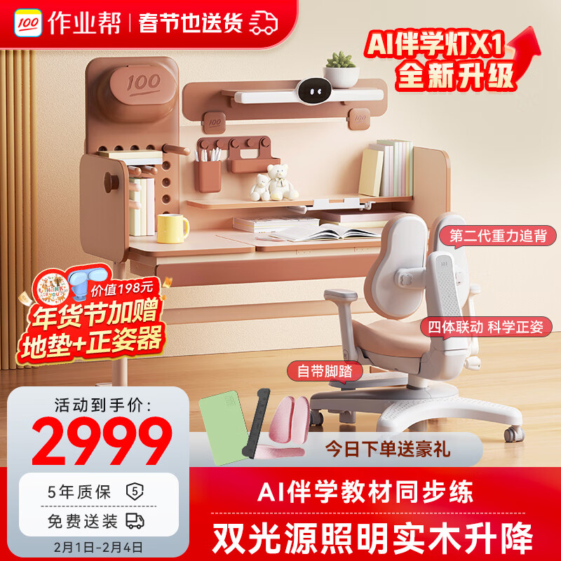 作业帮辅导家AI伴学灯X1升级款 儿童学习桌椅书桌追背椅pro1.2m巧克力价格:3199.00元!