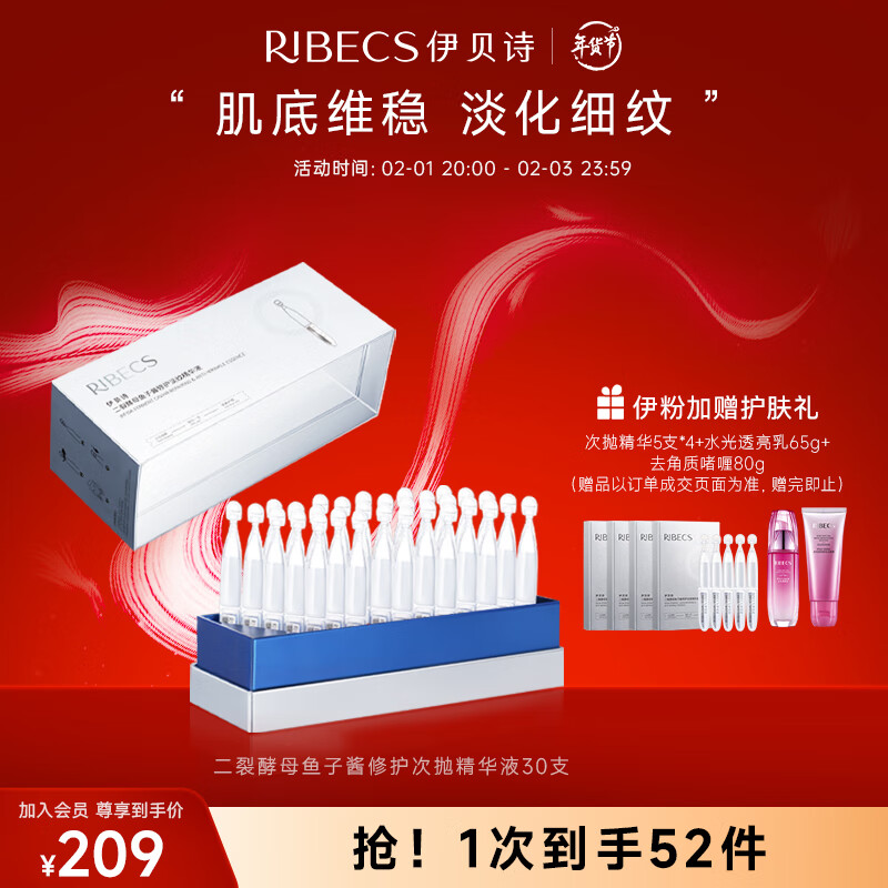 伊贝诗二裂酵母鱼子酱修护淡纹次抛精华液淡纹紧致匀净透亮30支*1.5ml价格:249.00元!