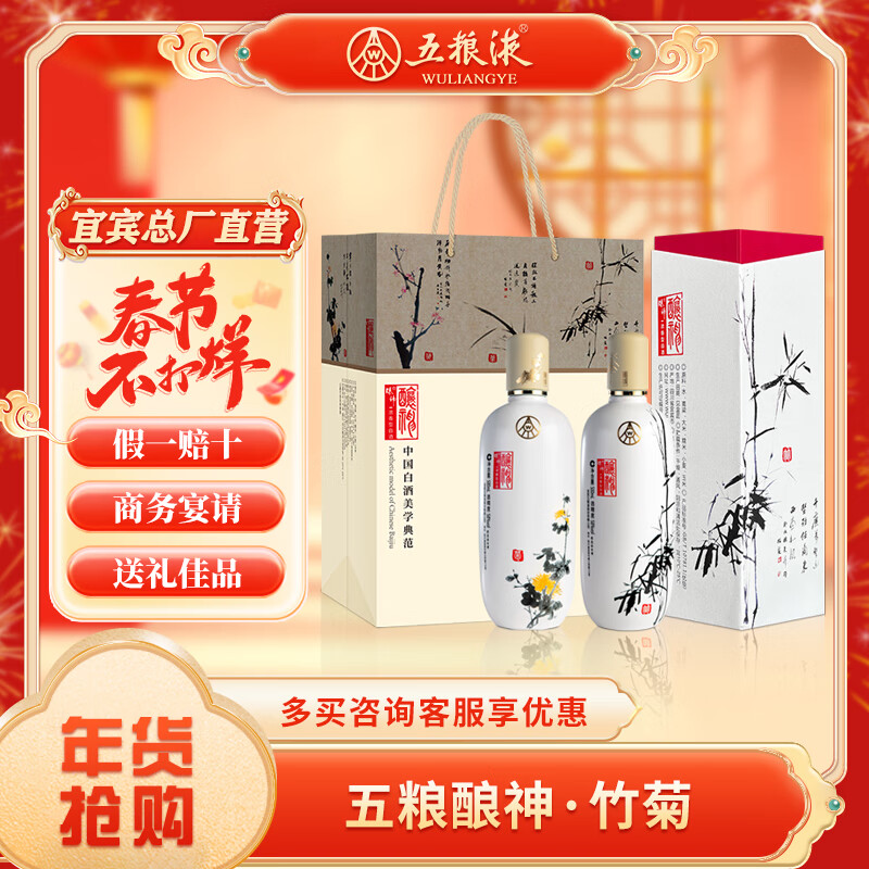 五粮液 酿神竹菊 浓香型纯粮食白酒58度500ml*2瓶装 龙年送礼 年货节价格:917.90元!