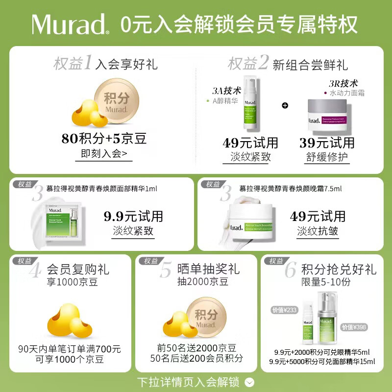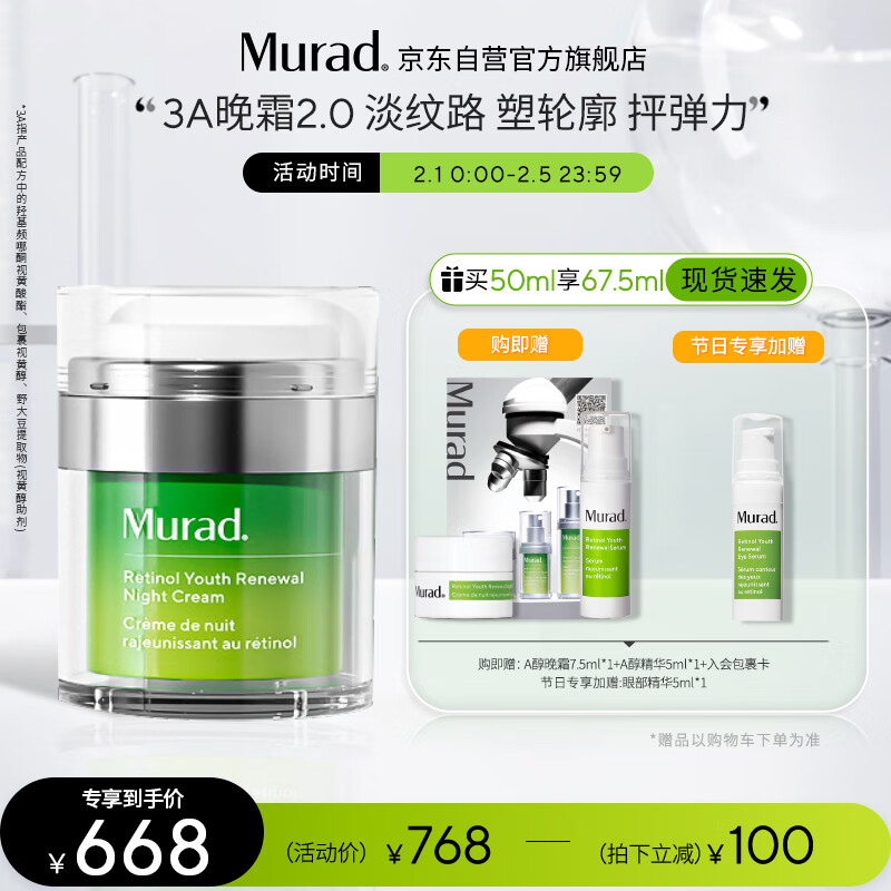 Murad慕拉得视黄醇A醇晚霜50ml面霜送女友早C晚A新年礼物保湿价格:768.00元!