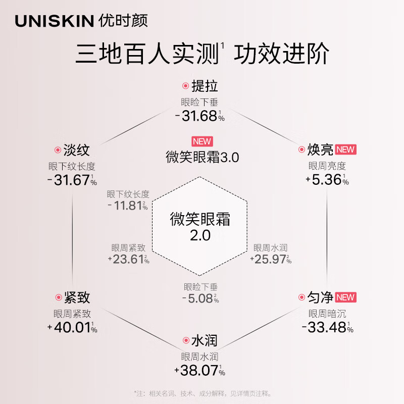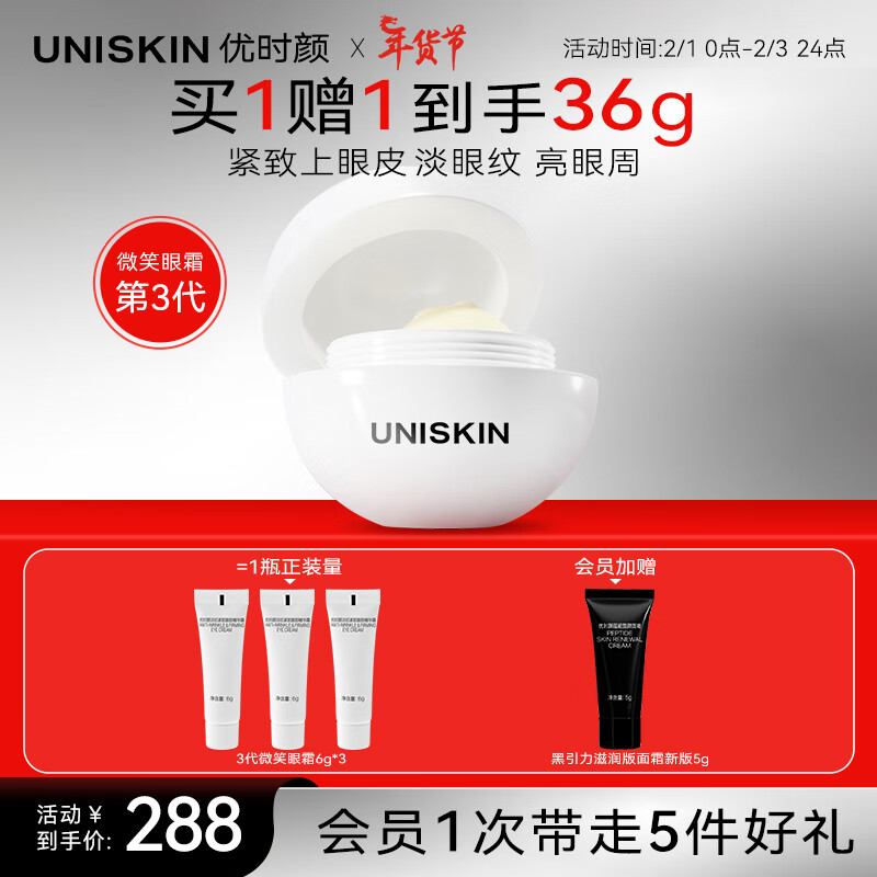 优时颜(UNISKIN)淡纹眼部紧致精华霜微笑眼霜18g第三代淡化眼纹提拉紧致提亮保湿价格:318.00元!
