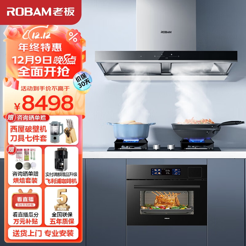 老板(Robam)60D1S+57B2DT+CQ9081D烟灶蒸烤套装厨房多件套22m3/min抽油烟机家用蒸箱烤箱嵌入式 (天然气)价格:8498.00元!