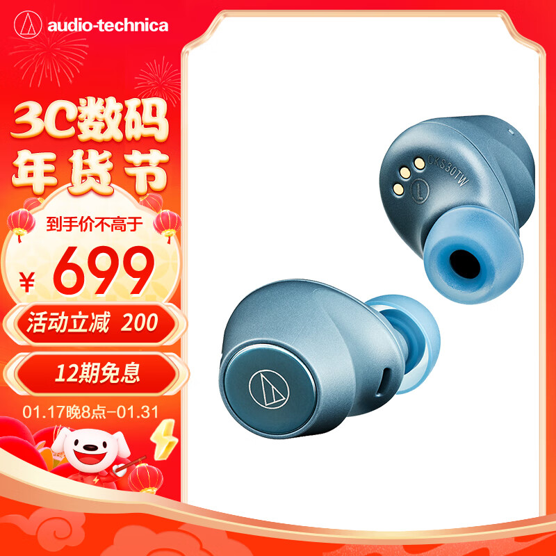 铁三角(Audio-technica)CKS30TW 真无线蓝牙5.1耳机 入耳式音乐重低音防水 兼容苹果华为小米手机 蓝色价格:899.00元!