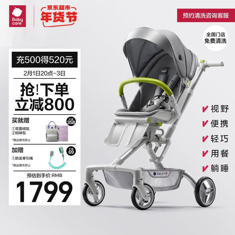 babycare婴儿推车轻便头等舱遛娃神器避震推车可坐可躺双向推行-冰霜银价格:2599.00元!