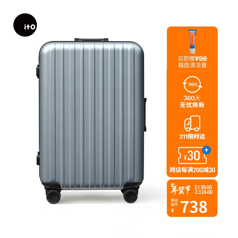 ITO行李箱CLASSIC 15拉杆箱男女旅行登机箱万向轮大容量银色20英寸价格:888.00元!