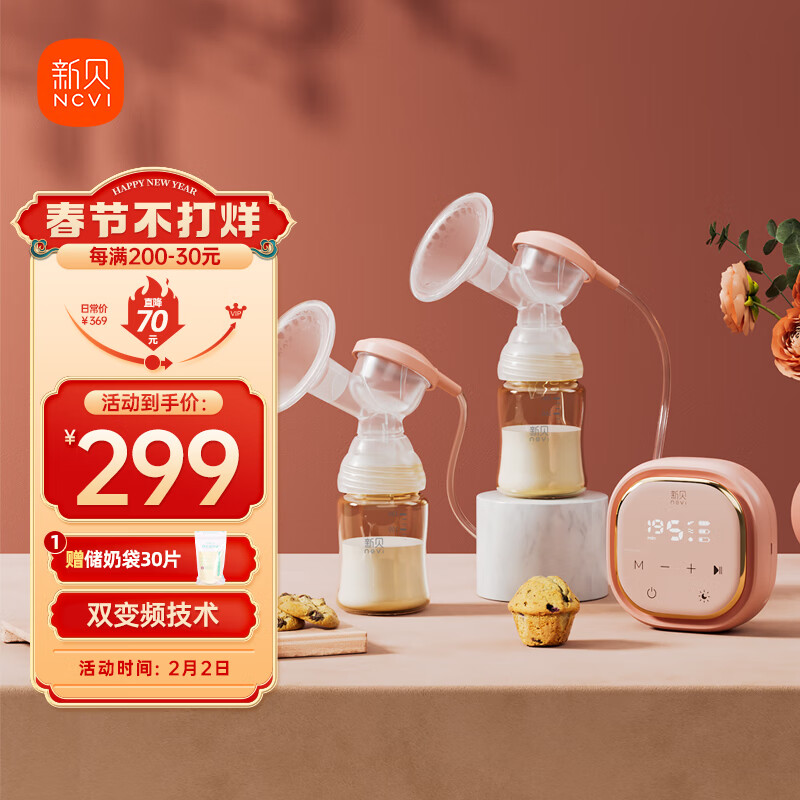 新贝 吸奶器电动变频双边吸奶器 挤奶器吸乳器 吸力大无痛 8775-1价格:354.00元!