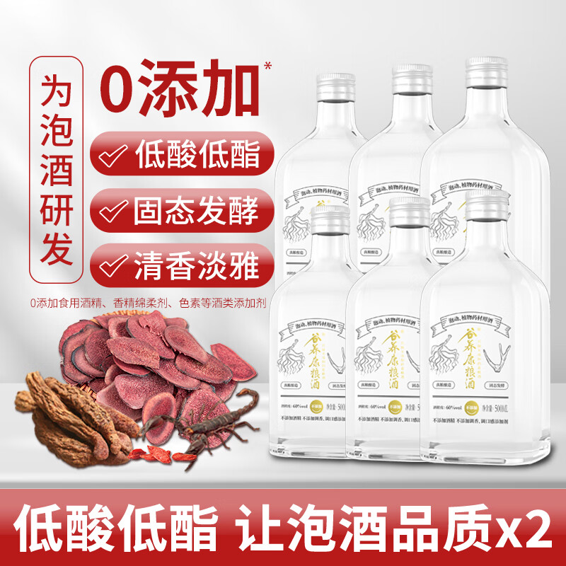谷养康粮食酒 泡酒用酒瓶装清香高粱酒白酒泡果酒泡药酒纯粮酒 60度 500mL 6瓶 【质选】适合动植物价格:1247.00元!