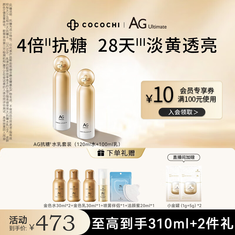 COCOCHICOSME蔻蔻琪AG抗糖水乳套装220ml 玻色因护肤乳液补水修护淡黄提亮价格:473.00元!