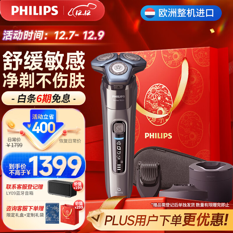 飞利浦(PHILIPS)男士电动剃须刀蜂巢7系Pro SkinIQ高端系列刮胡刀 欧洲原装进口【礼物送男友送爸爸】S7788/59价格:1699.00元!