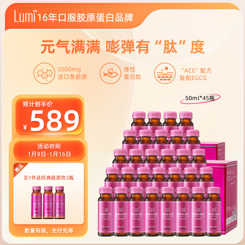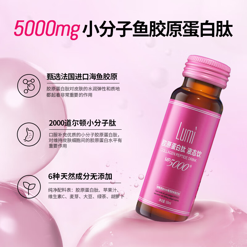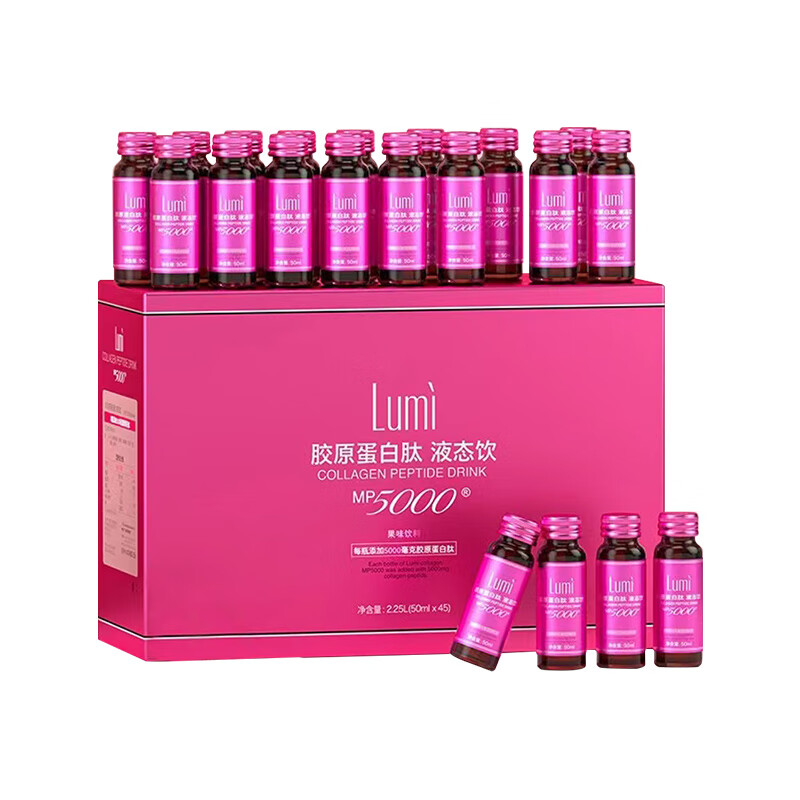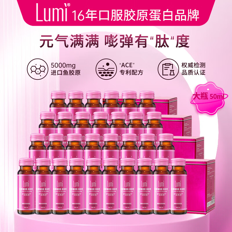 Lumi 胶原蛋白肽液态饮口服液 胶原蛋白小分子肽饮 ACE专利配方 维生素C VE 50ml*45瓶价格:778.00元!