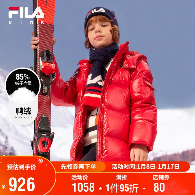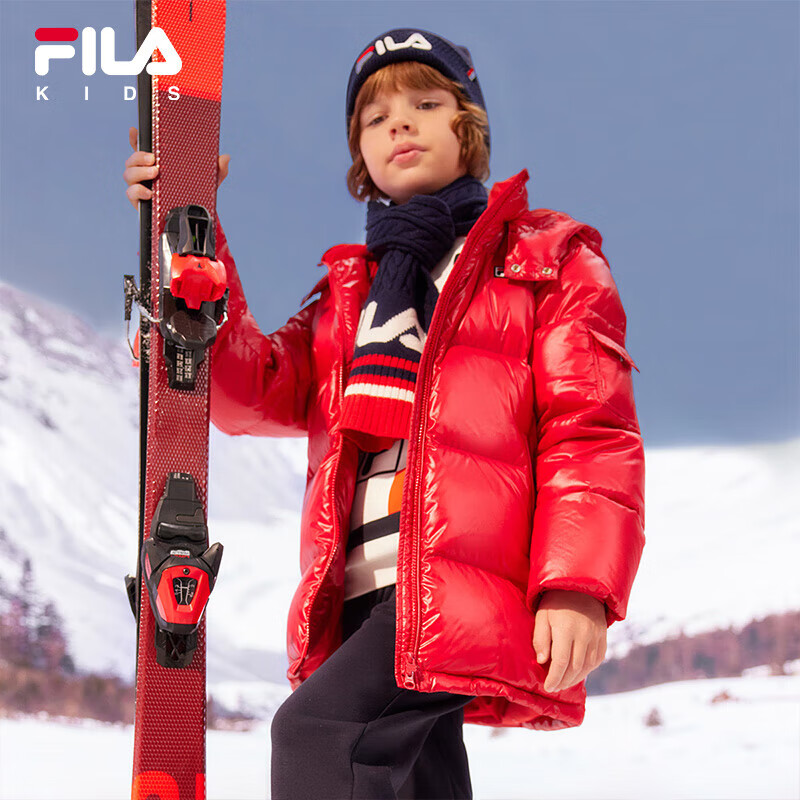 FILA斐乐童装外套2023秋冬中大童男童女童亮面中长款羽绒服价格:1058.00元!