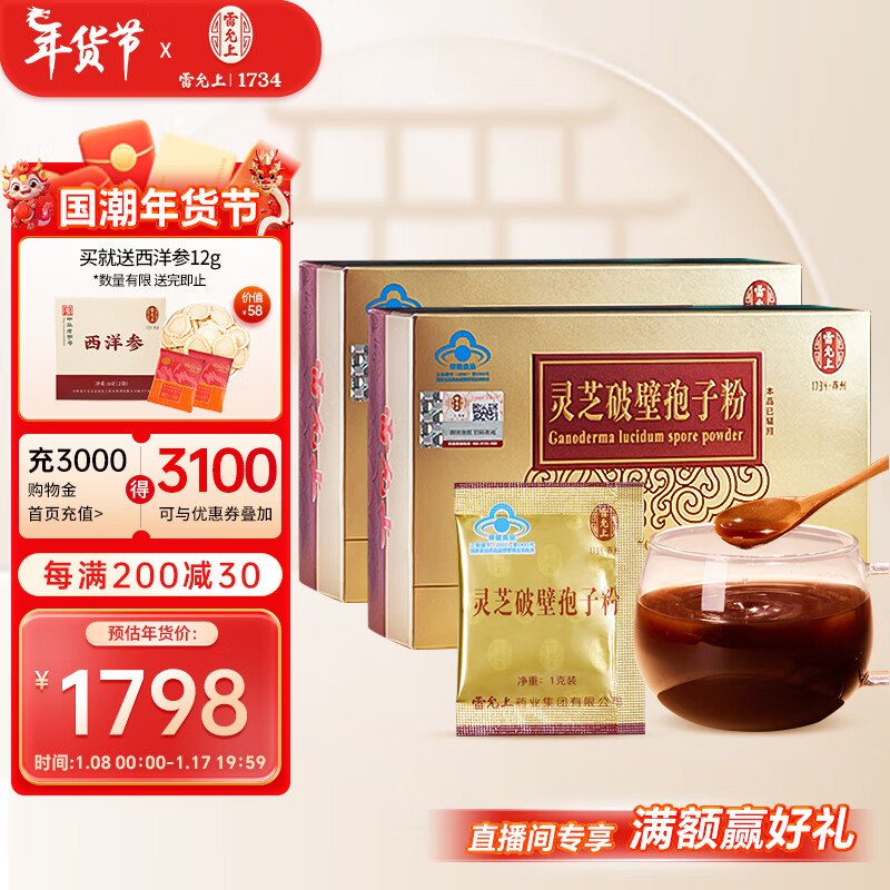 雷允上破壁灵芝孢子粉100g*2盒 吉林长白山赤灵芝粉 成年中老年免疫调节 年货礼盒价格:2098.00元!