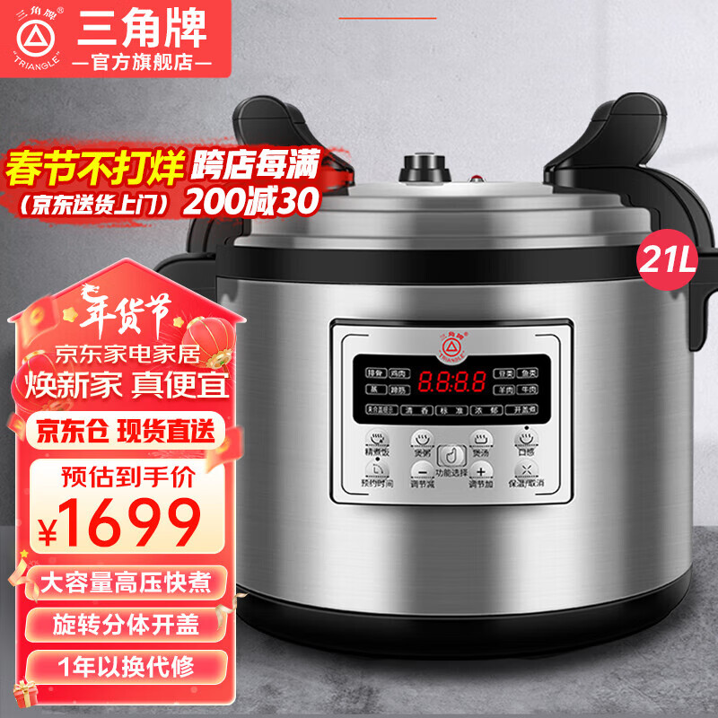 三角牌(Triangle) 商用电锅 大容量电高压锅 特大号大电饭煲/酒店/饭店/食堂/煮饭煲汤炖肉多用途汤锅饭锅 21升丨适合30-42人价格:1699.00元!
