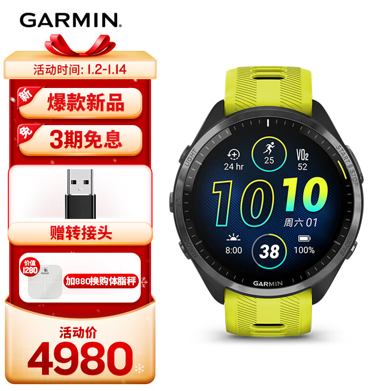 佳明(GARMIN)Forerunner965黄色多功能心率跑步HRV血氧铁三训练户外运动手表价格:4980.00元!