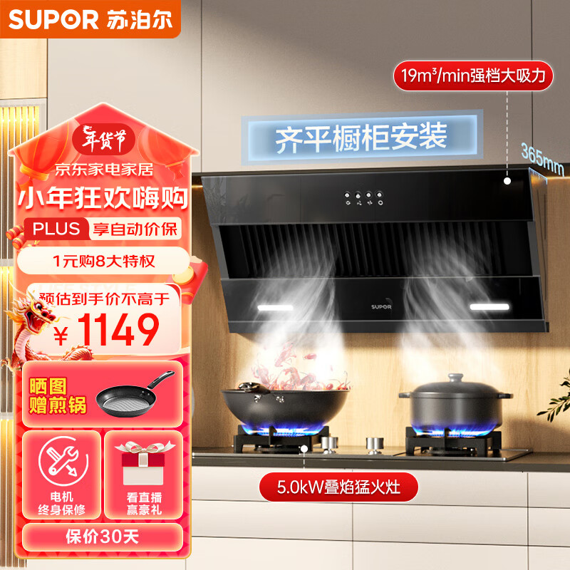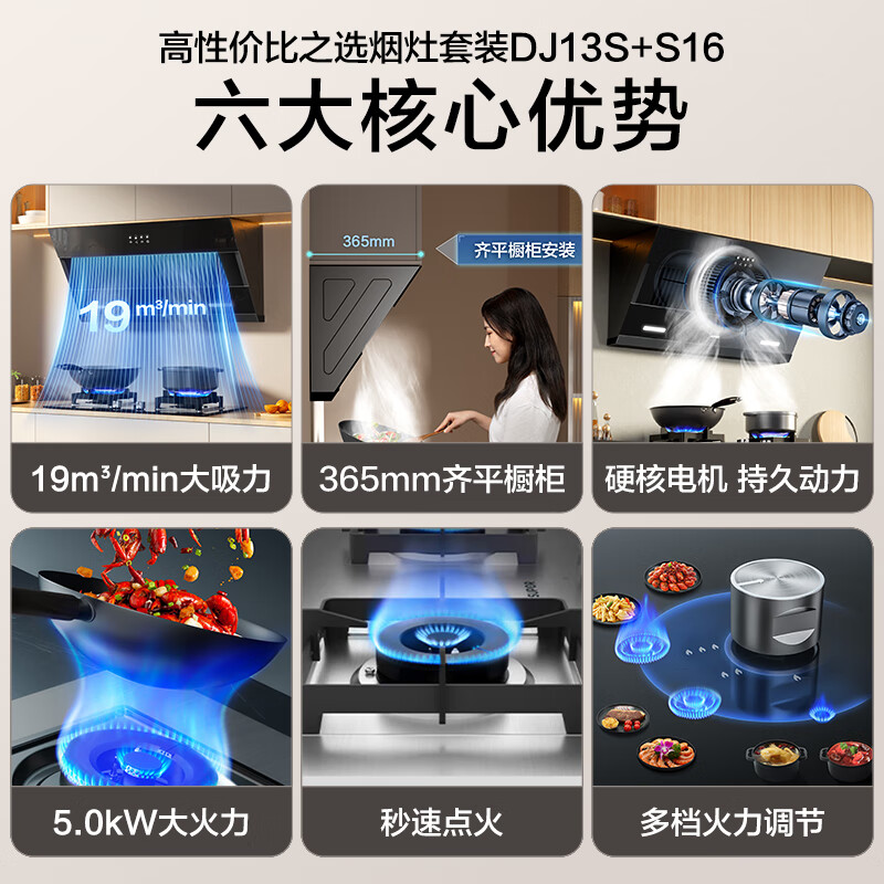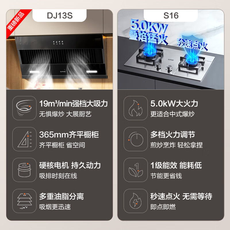 苏泊尔(SUPOR)抽油烟机燃气灶套装 家用小尺寸大吸力 19立方侧吸式小户型烟灶套装DJ13S+S16天然气价格:1149.00元!