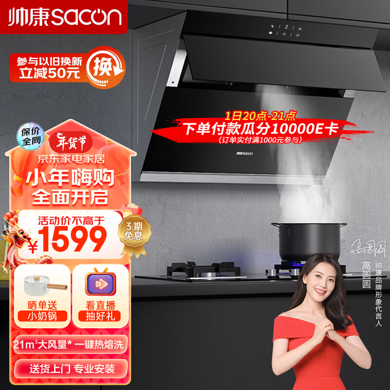帅康(Sacon)抽油烟机 挥手智控大吸力侧吸式抽油烟机75CM小户型自清洗烟机S8905S价格:1599.00元!